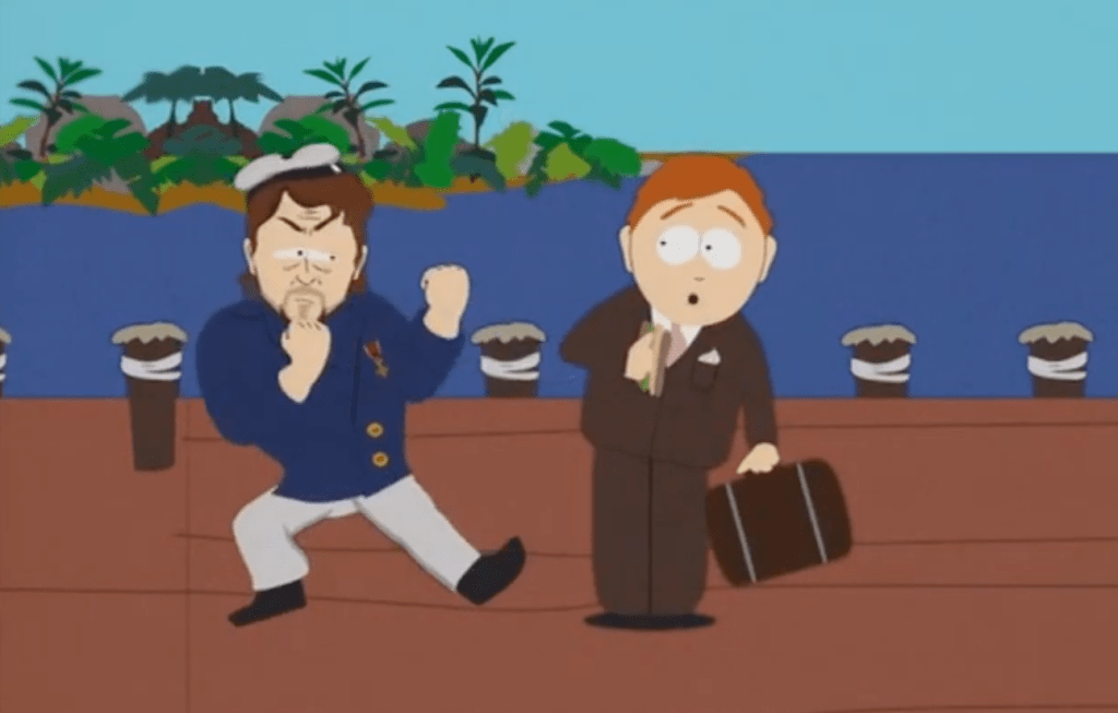 A glance at IMDb indicates that I have seen 10% of Crowe’s film output. He was brilliant in LA Confidential (1997), equally so playing introverted but relentless types in The Insider (1999) and American Gangster (2007), and perhaps also in any of the myriad ones I haven’t seen. He has amazing range. Maybe he viewed this project as a way to counter South Park‘s on-the-money critique of his personality flaws …but doing so by sending himself up by way of an artless thriller seems kind of weird.