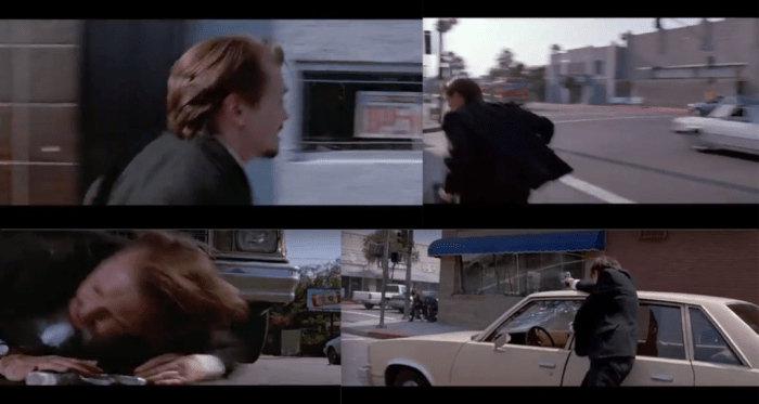 He takes these influences, and countless others, and, like all geniuses, makes something new, adding stuff no one thought of before: like Steven Wright’s hilariously languid disc jockey narrative inserts, movie-obsessed hardened criminals-within-the-movie talking about movies, and Harry Nilsson, singing offbeat, unclassifiable pop over the closing credits.